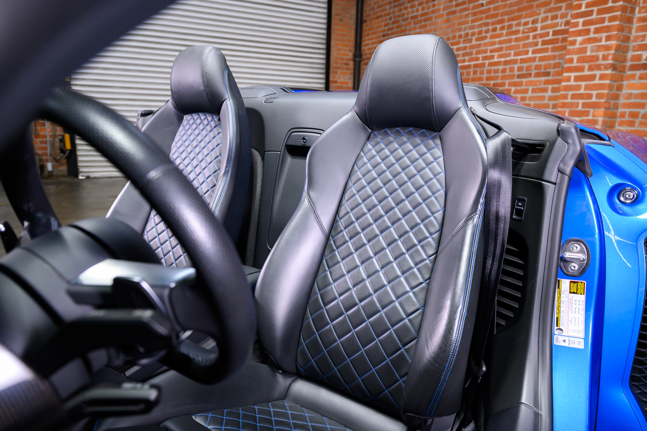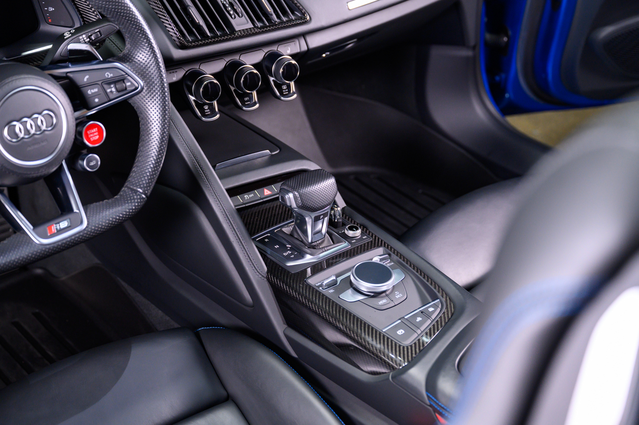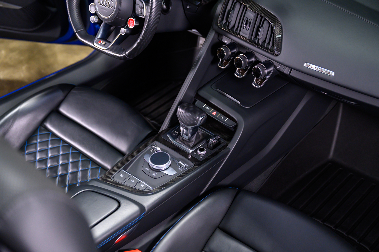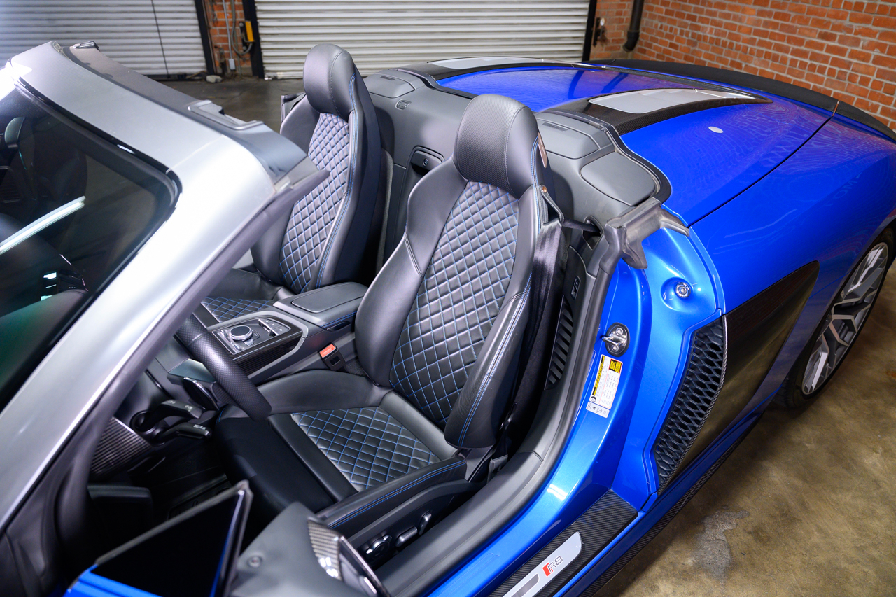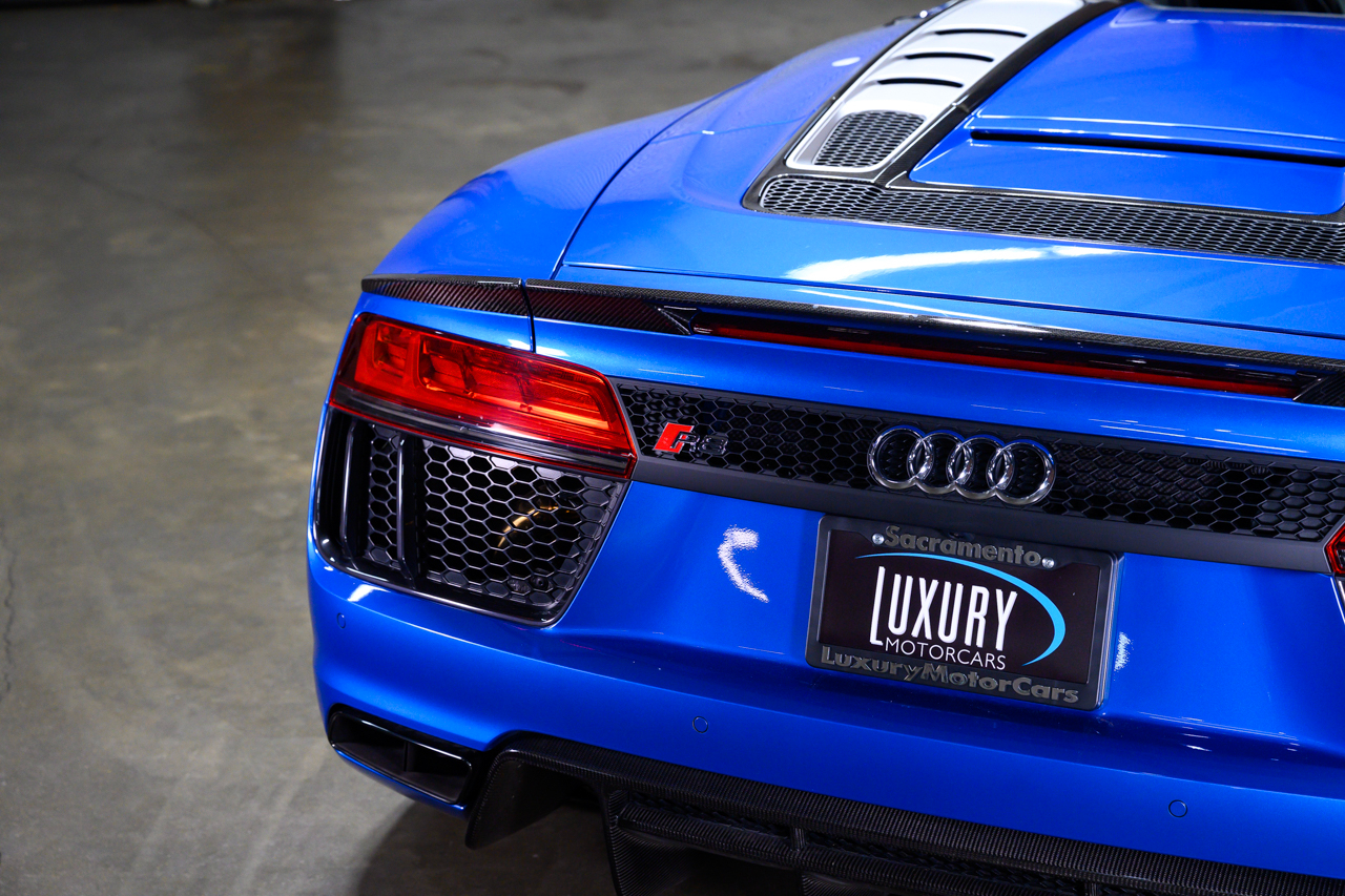 This absolutely stunning example of an Audi R8 V10 Plus Spyder comes offered in Ara Blue Crystal effect over a Black leather interior with Ara Blue stitching.