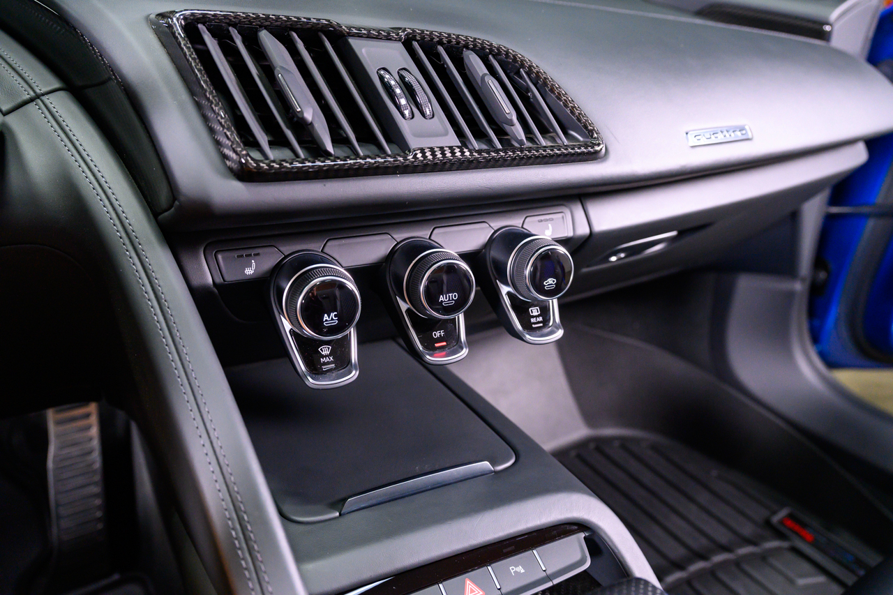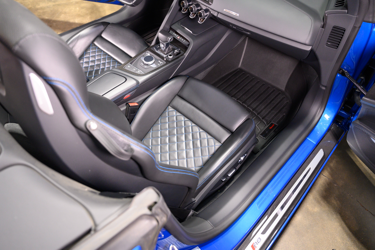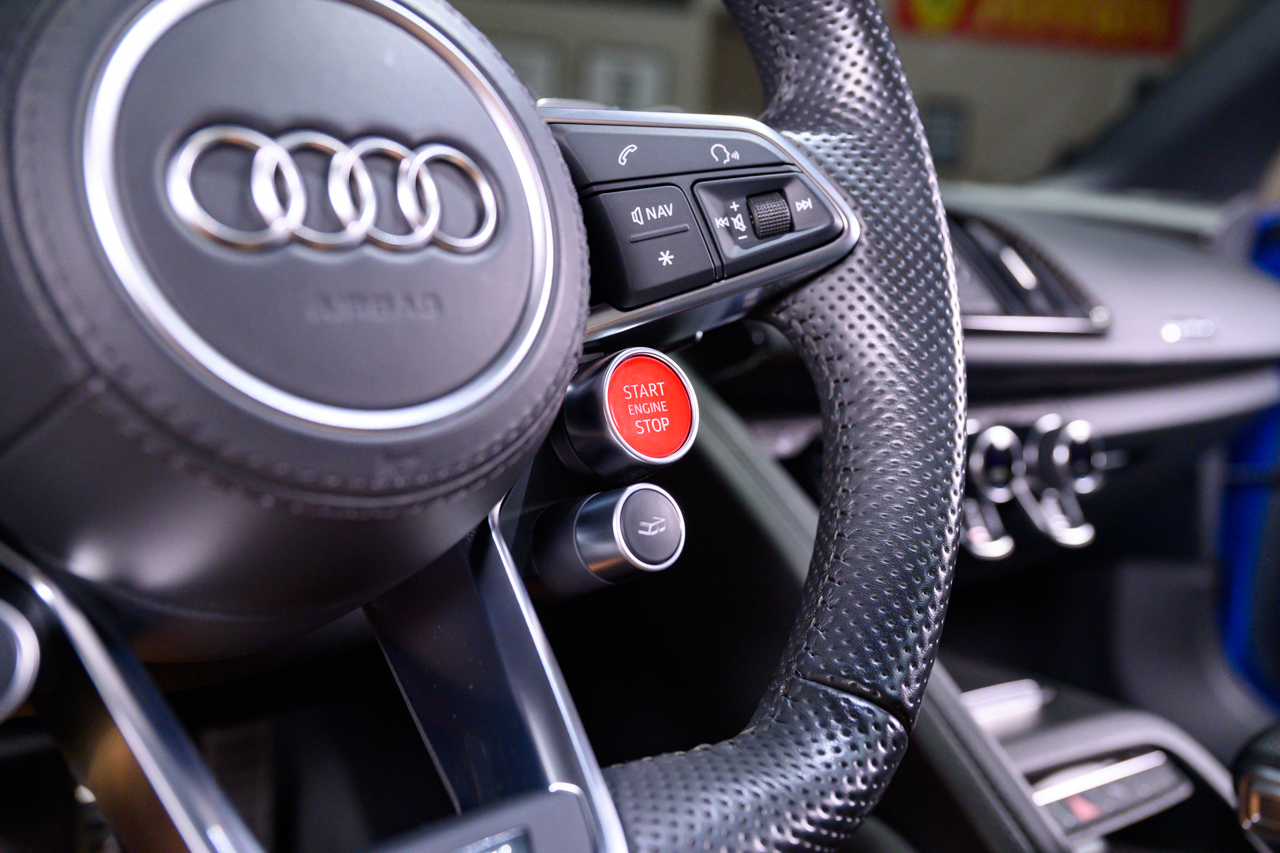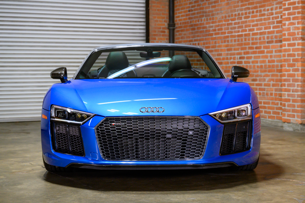 This absolutely stunning example of an Audi R8 V10 Plus Spyder comes offered in Ara Blue Crystal effect over a Black leather interior with Ara Blue stitching.